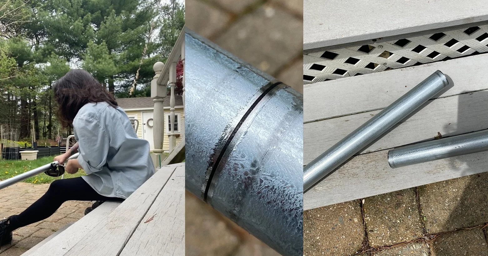 I landed on 1 1/4 inch EMT pipe and screw couplings to join the sections. I went in there just expecting an employee would be able to cut the pipe for me (that’s apparently not a thing). So with my two 10 foot pipes, a pipe cutter, and a whole lot of feminine energy I was off to do the thing. One lesson I learned from Lisa was always have backups of anything you can have a backup of, so just in case, I grabbed two extra couplings to keep in my gear case.